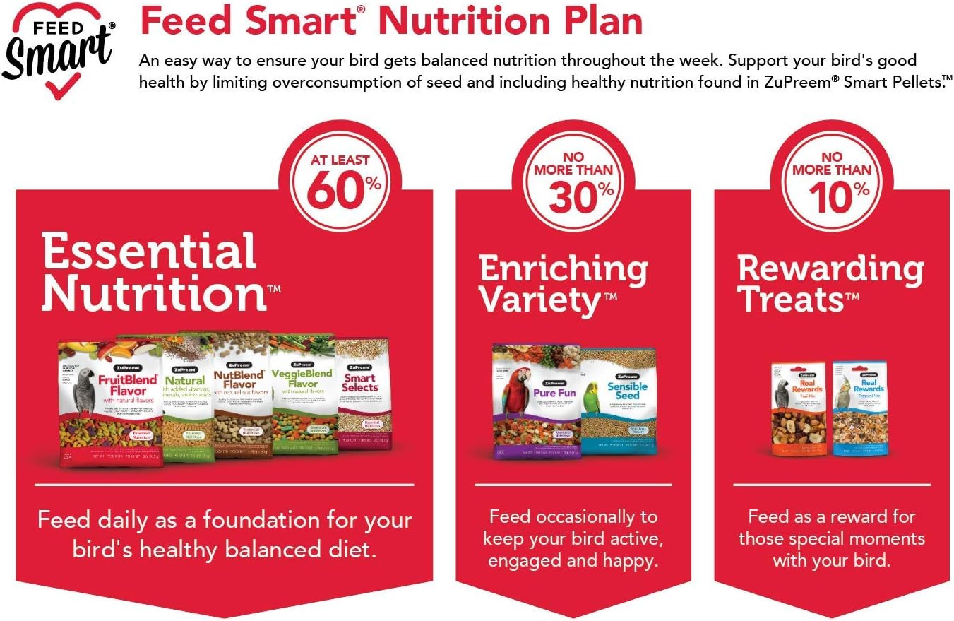 ZuPreem Sensible Seed Bird Food, Cockatiel, Lovebird, Quaker, Small Conure, Seed and Pellet Blend for Medium Birds, Food Mixer Topper, Enriching Variety, Made in the USA, (M, 2 lbs)