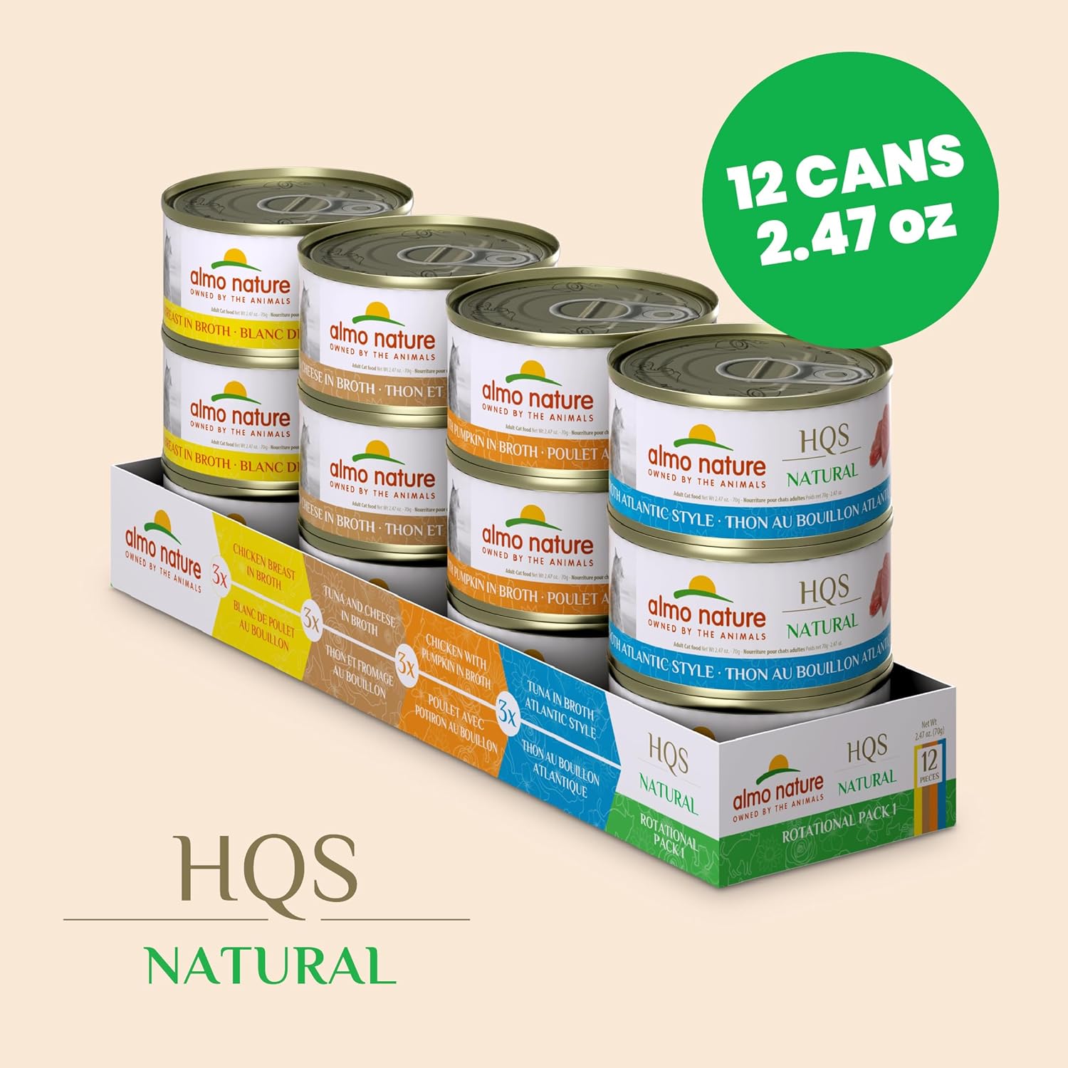 almo nature Wet Cat Food HQS Natural Rotational Diet Chicken & Tuna Selection-Variety Pack, Grain-Free, High-Protein, Highly Digestible, Sensitive Stomach Formula, Additive-Free, 2.47 oz Cans,24-Pack