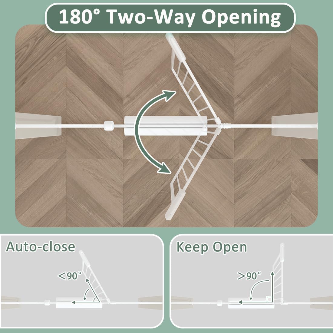 - 【BABY GATE WITH DOOR】 - The door can swing in both directions. Besides,the door of our baby gate has auto-close and auto-lock function. You don't need to worry about forgetting to close the door,it will auto-close when opens less than 90 degrees,You can open the door just with one hand.