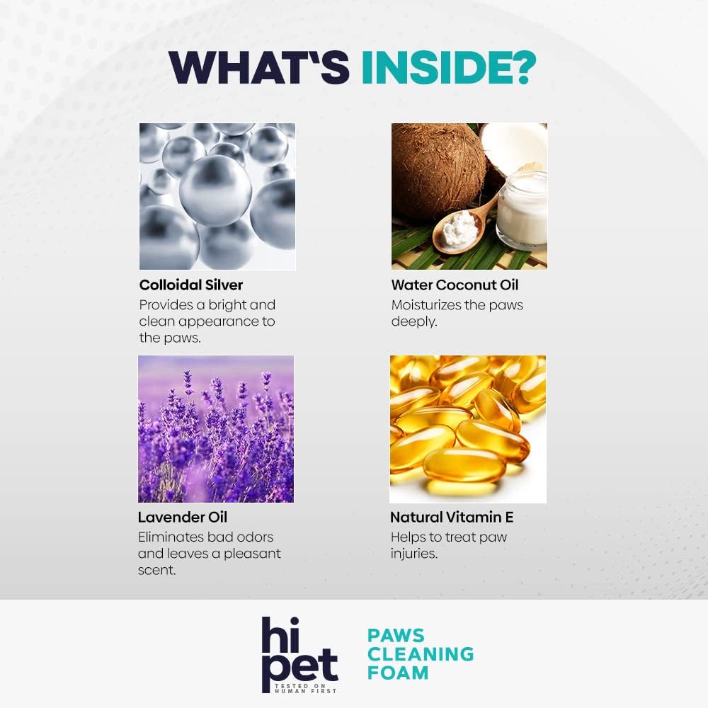 - WATERLESS PAW CLEANER - HiPet is a cleanser foam for dogs large medium small XL breed. Suitable for different paw sizes. Instantly removes stubborn dirt from your pet's paw.