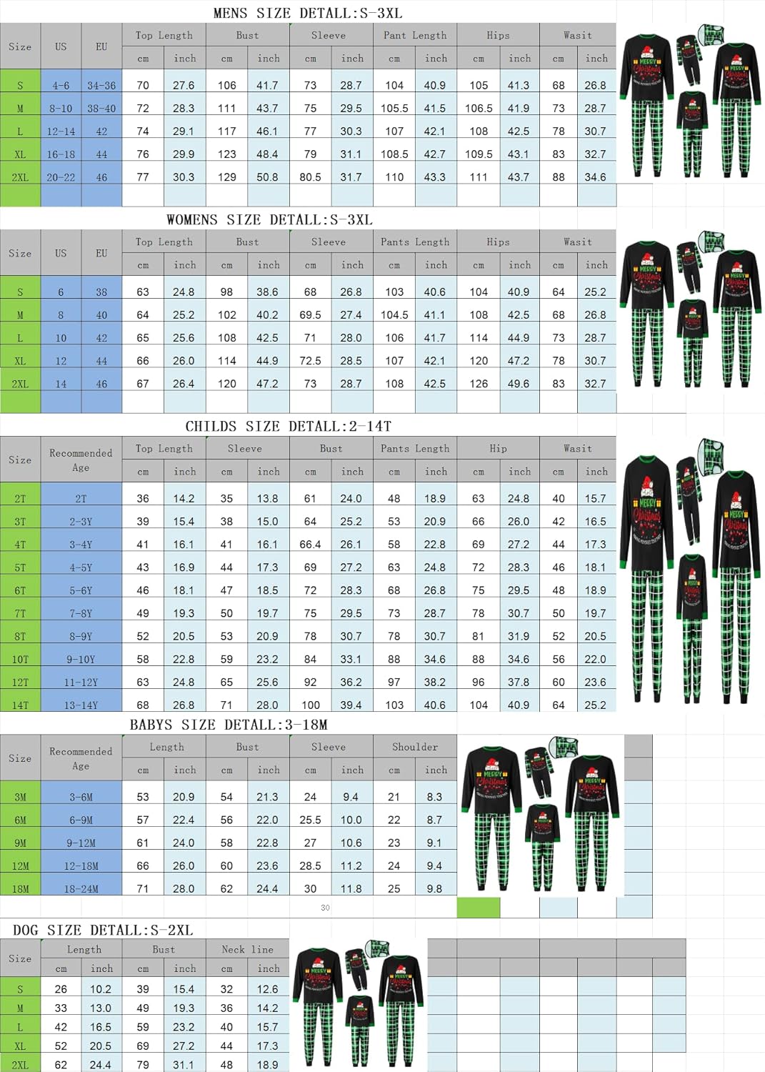• [Sizes for Everyone] - Our Family Matching Christmas Pajamas Christmas pajama sets span a variety of sizes to fit everyone - women, men, boys, girls, pets, adults, children, toddlers, and even babies