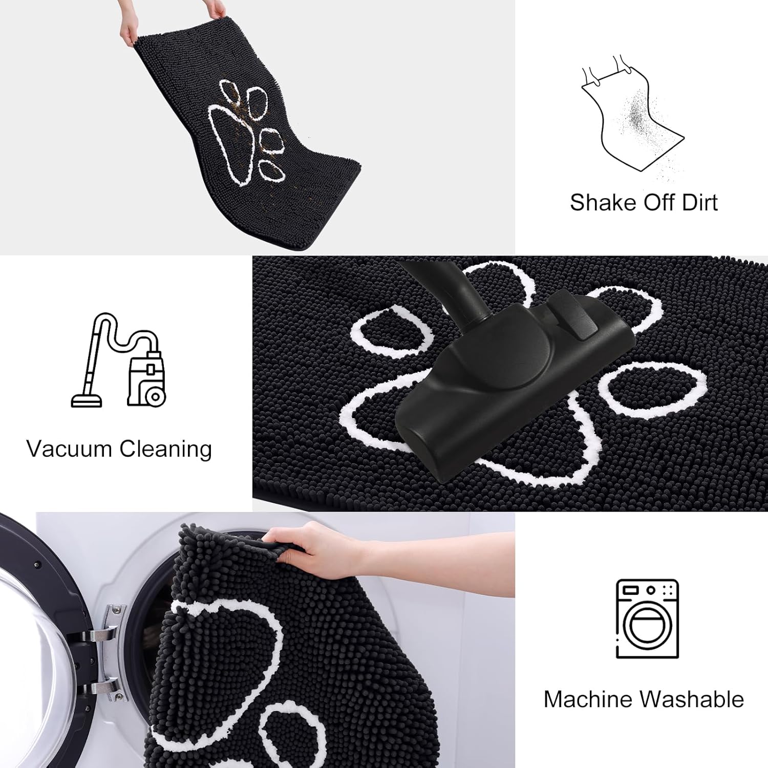 Smiry Dog Door Mat for Muddy Paws, Absorbent Dirt Trapper Non Slip Quick Dry Washable Chenille Mat for Mud Dogs, Entry Rug for Indoor and Outdoor (36x24 Inches, Black)