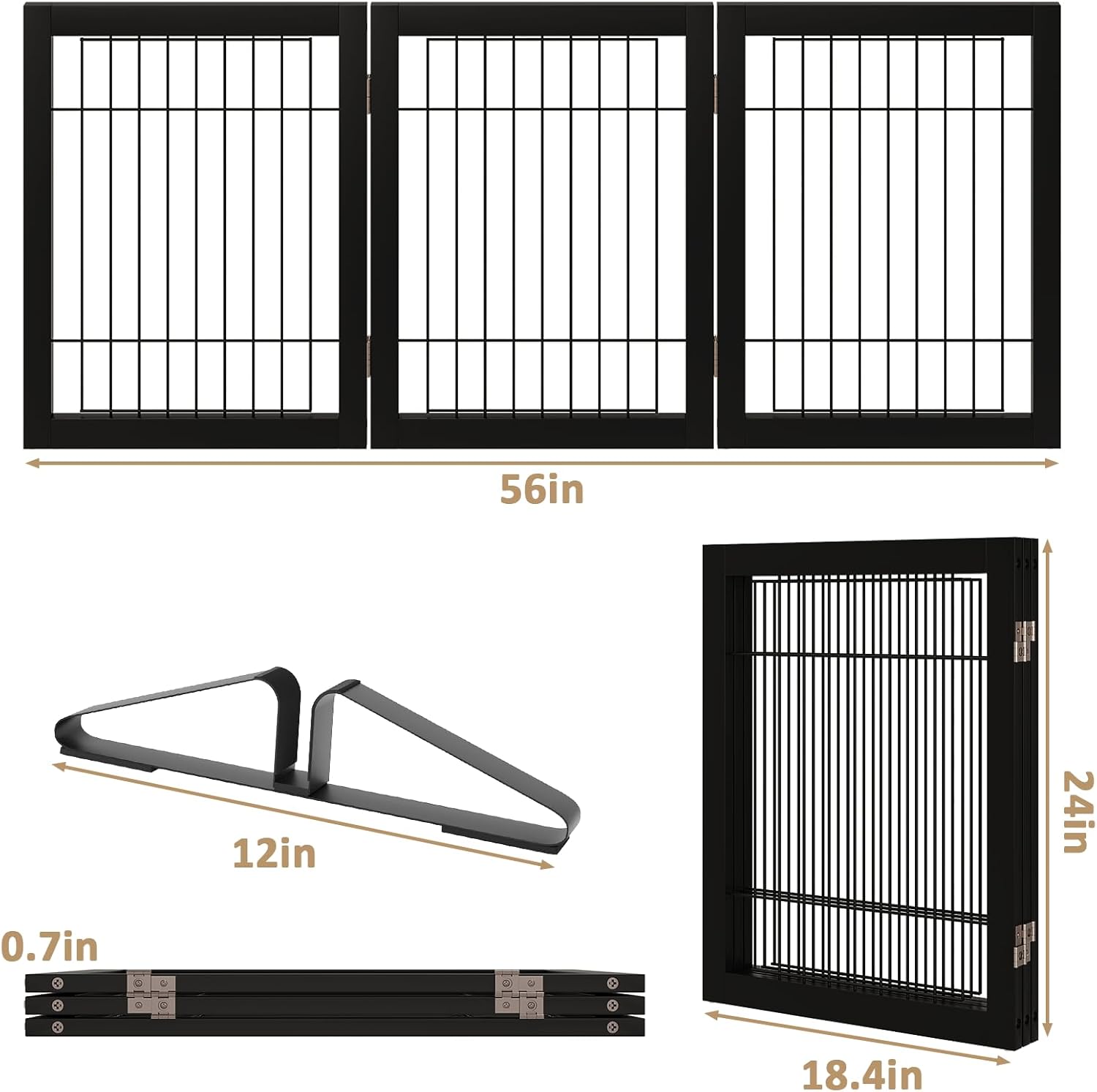 - [Decorative Room Gate] Smooth surfaces, solid-colored modern dog gate indoor, match with your home decor, incorporate into your home decor. suitable size fit most openings: 3 panel dog gate wide 55", 24"tall, 4 panel dog gate wide 74", 24"tall