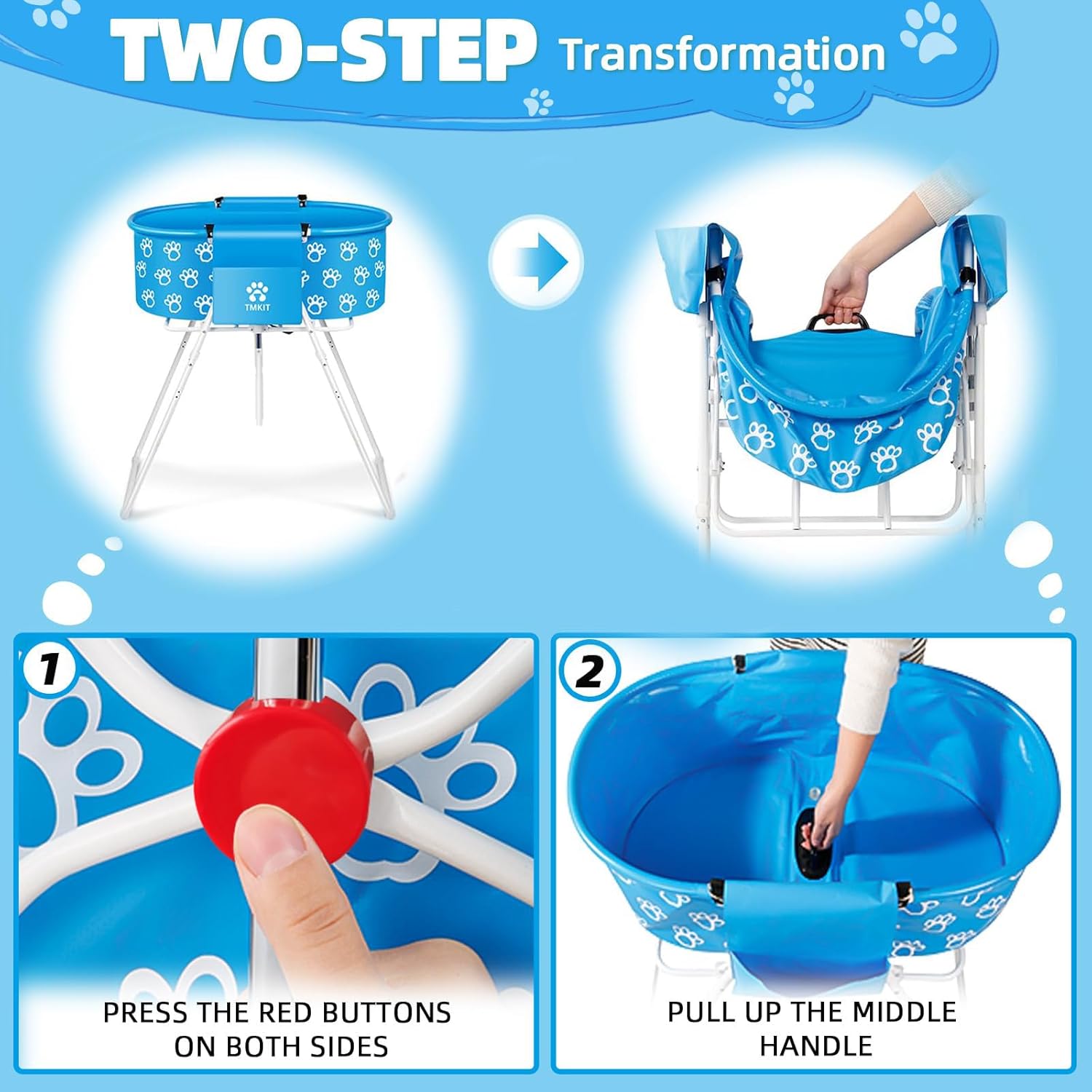 Dog Bathtub, Elevated Dog Bath Tub for Pet Bathing Shower and Grooming. Portable, Foldable with Safety Lock, Professional Pet Dog Washing Station for Small, Medium, Large Dogs Cats, No Backache