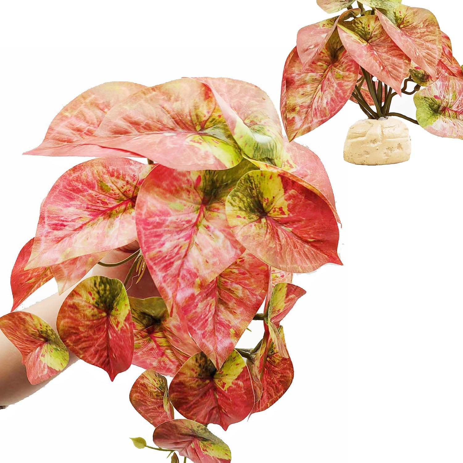 - STURDY AND DURABLE :Includes a weighted rock-shaped base , adding stability and enhancing the overall aesthetic of the tank. It looks great in excellent addition to the habitat. It also applies to enclosure recommend it to anyone wanting a natural look to their terrarium plants. They will make your Reptile tank beautiful!
