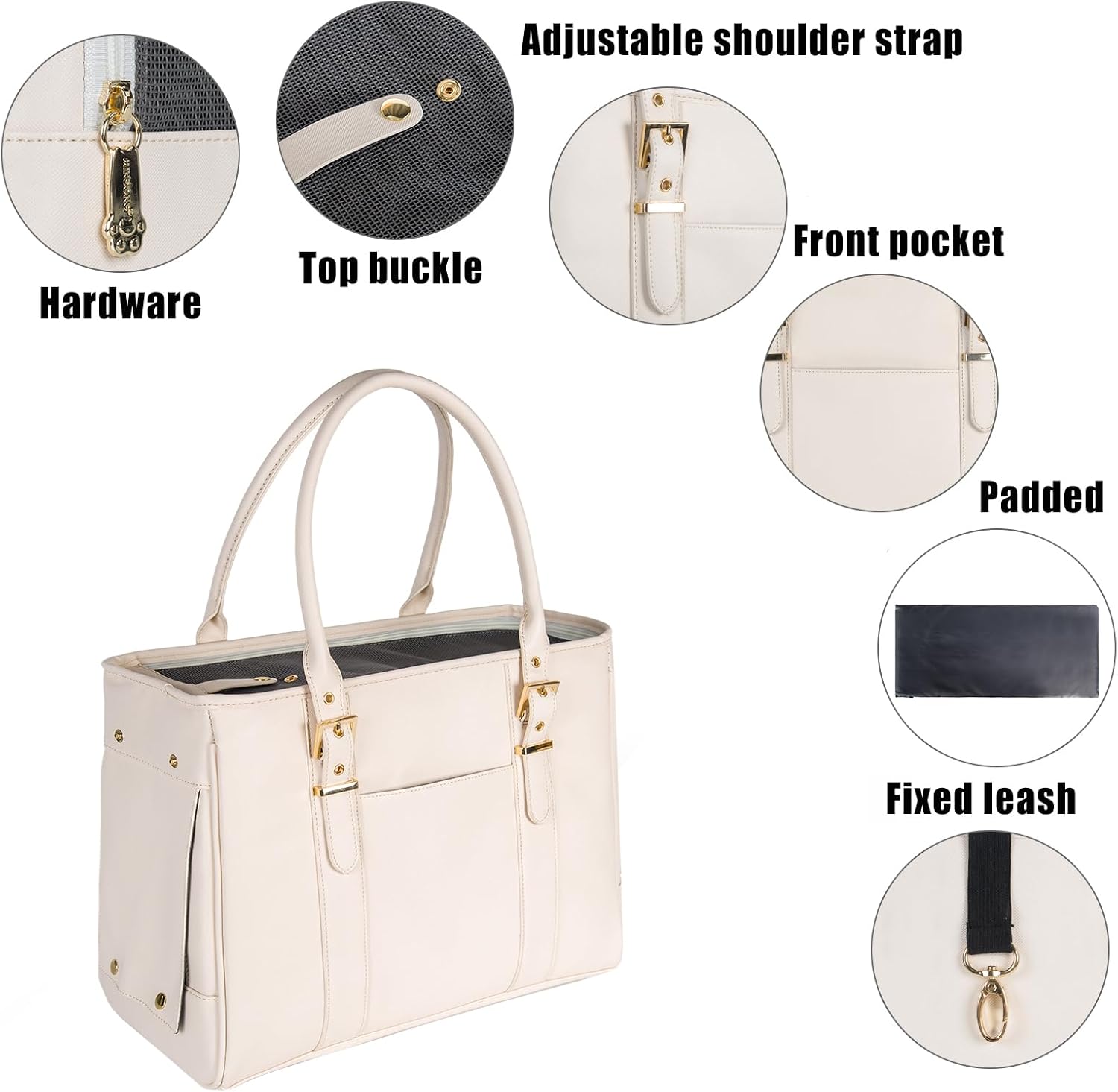 Fashion Pet Carrier Dog Purse Cat Bag Soft-Sided Carriers Travel Airline Approved, Stylish Leather Tote Handbag for Small Animal Puppy Kitten (White)