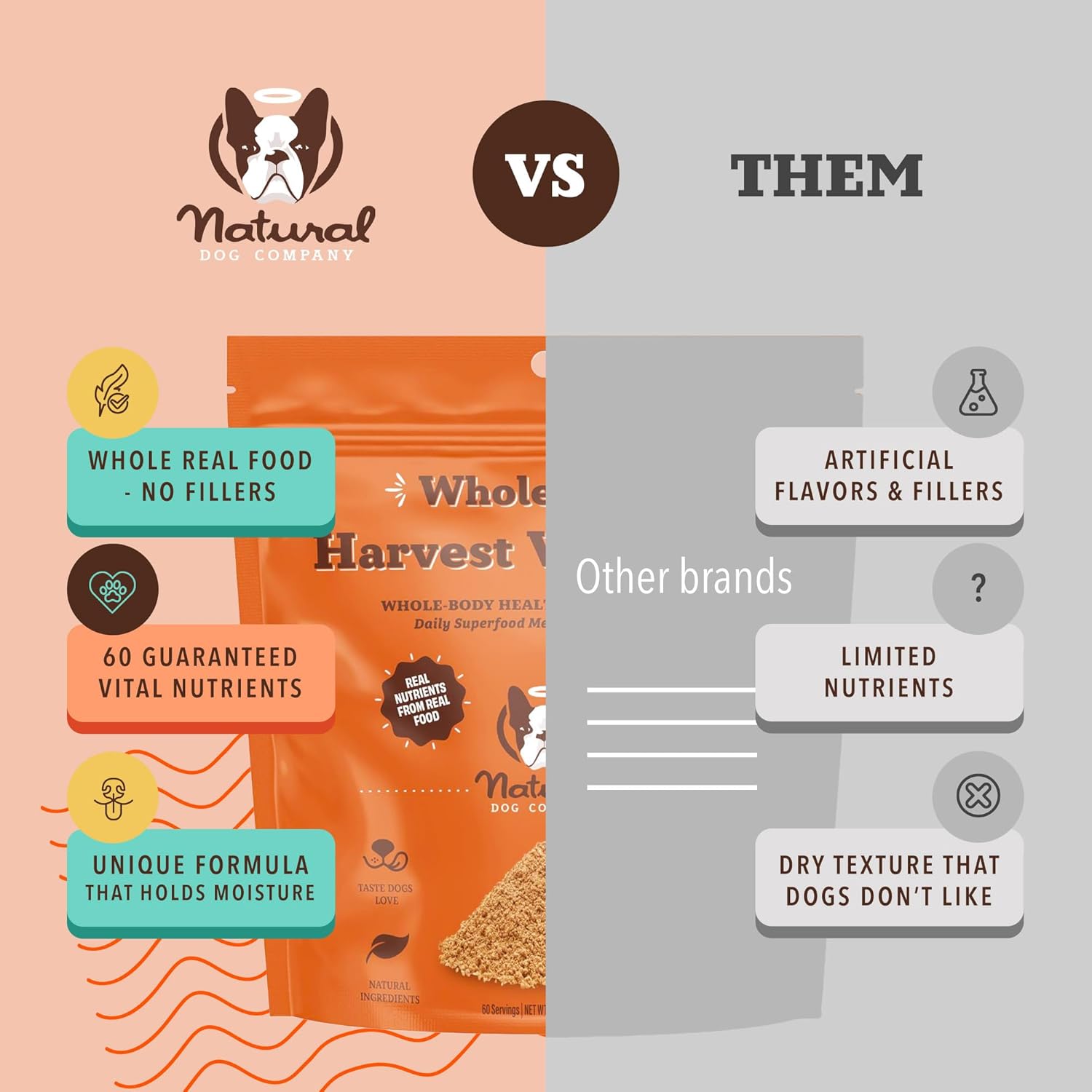 - BRIDGE THE NUTRITIONAL GAP OF YOUR EXISTING DOG FOOD: Elevate your dog's well-being with our nutrient-packed dog food topper, expertly formulated to bridge the nutritional gap often found in dog food. This superfood dog granule ensures your dog's energy levels and overall wellness are at their peak. It is a perfect addition for those looking for effective dog nutritional supplements.