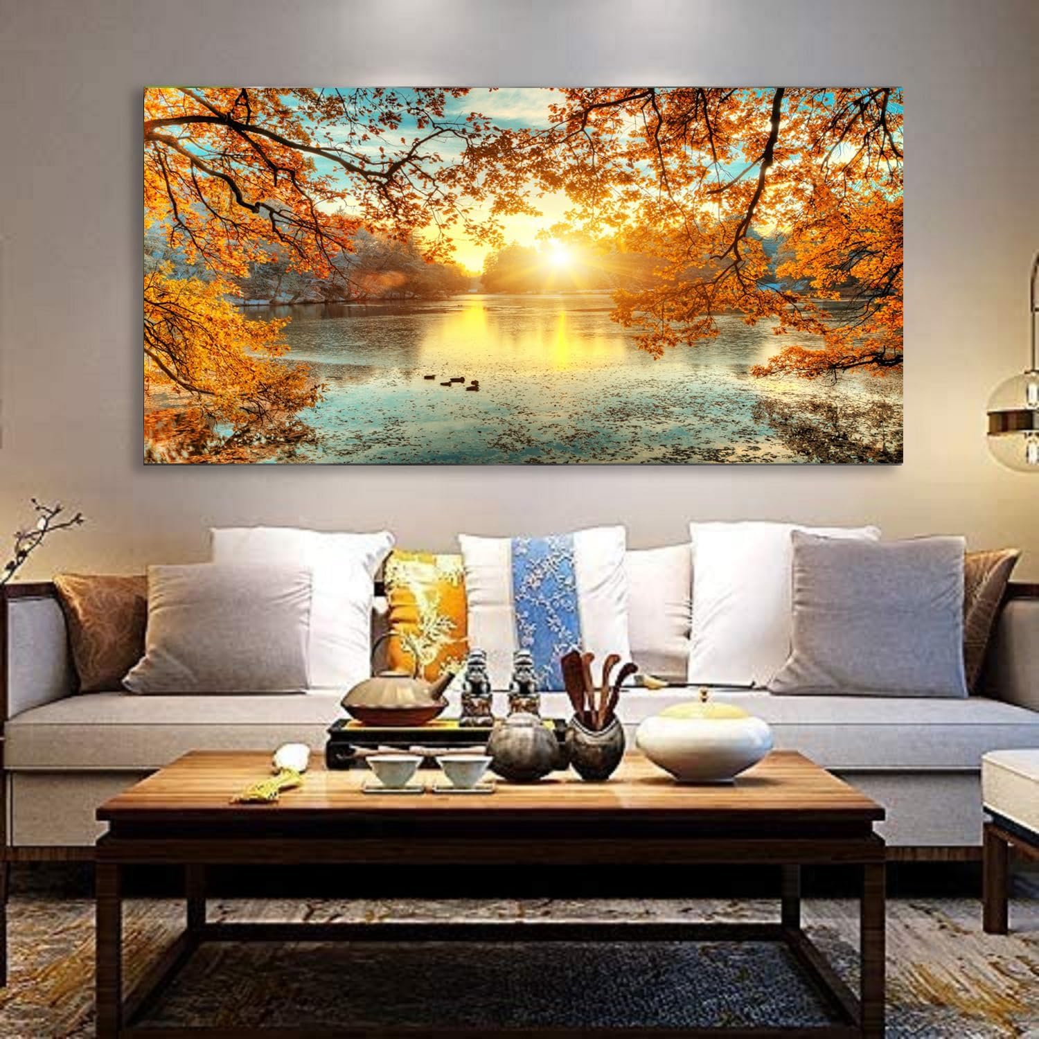 Yxbhhym-Landscape Tree Canvas Wall Art Fall Forest Sunset Wall Decor Poster Lake Water Pictures for bedroom wall decor Natural Scenery Paintings Artwork Modern Living Room Decor Home Office Decoration