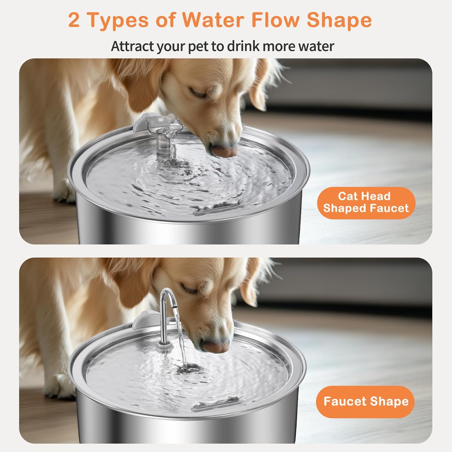 - 304 Stainless Steel Dog Water Fountain Construction: This dog water bowl dispenser is made of high-quality 304 stainless steel, offering superior durability and resistance to corrosion compared to plastic. It’s a safe, reliable choice to keep your pet’s drinking water clean and fresh.