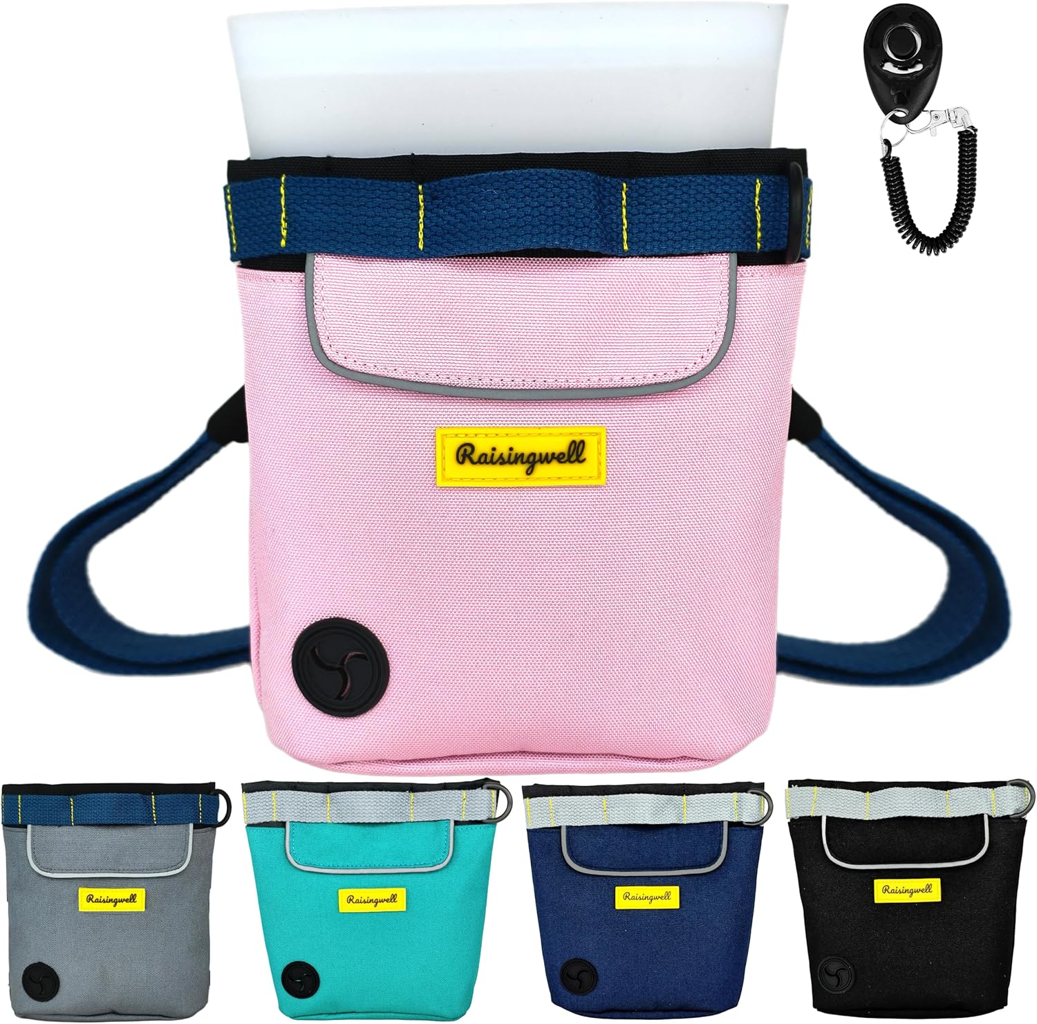 - 5.Durable Tech Material: Raisingwell's dog treat training pouch is made from durable, washable, and non-toxic fabric. Notably, its waterproof lining solves the problem of difficult-to-clean interiors of training bags, making it a great choice for your dog treat bag or dog treat fanny pack.