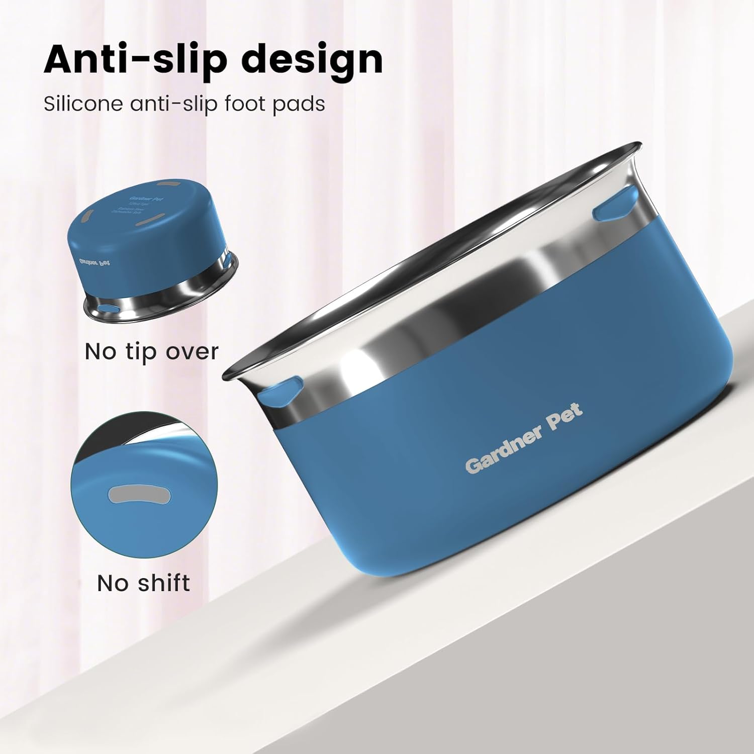 • Anti-Slip Design: Non-slip pads on the base ensure stability, preventing the bowl from tipping over or sliding, no matter how active your pet is.