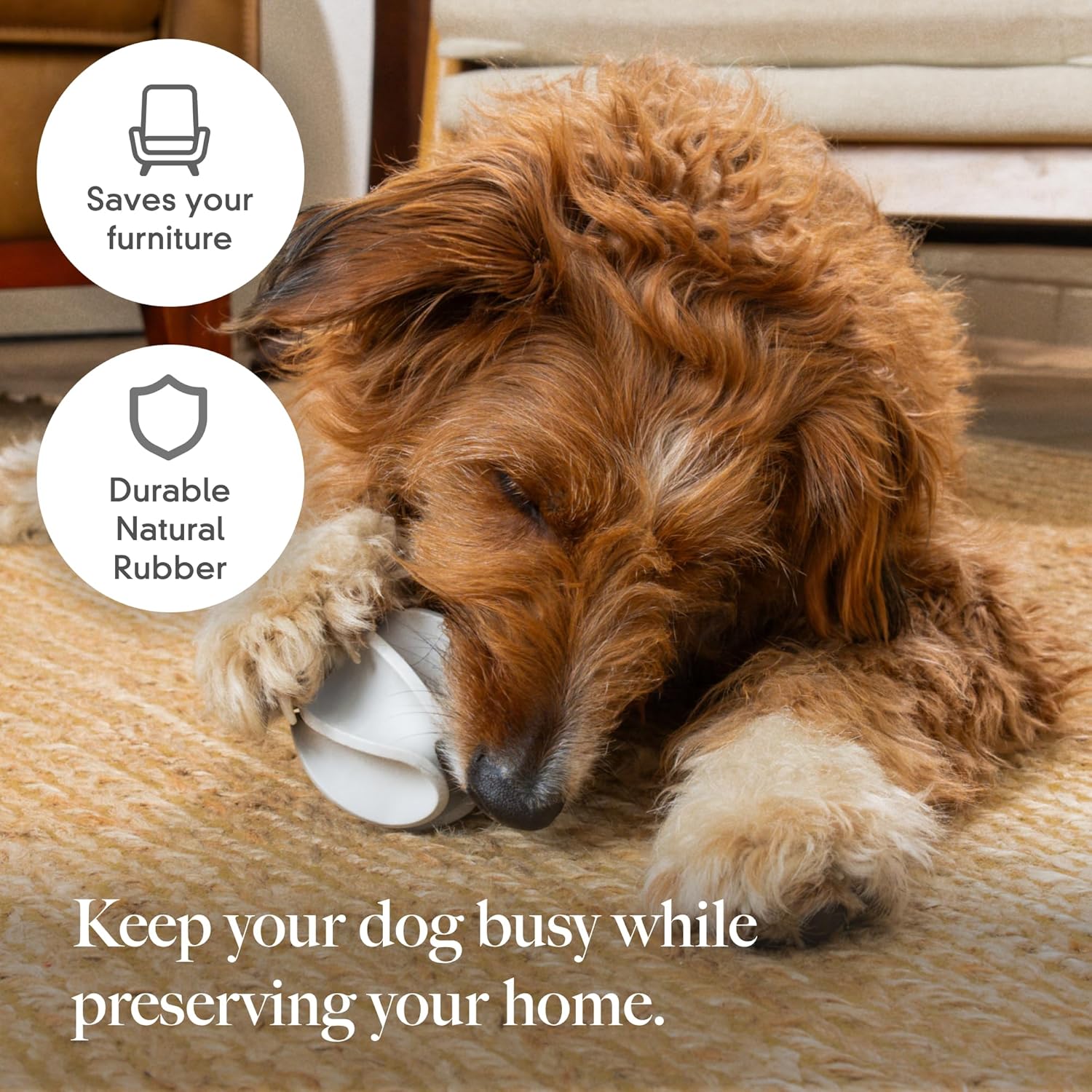 - [Made from Safe, Natural Rubber] Crafted from durable, non-toxic rubber that’s tough enough for chewers and gentle on teeth. Designed for long-lasting play and daily enrichment.