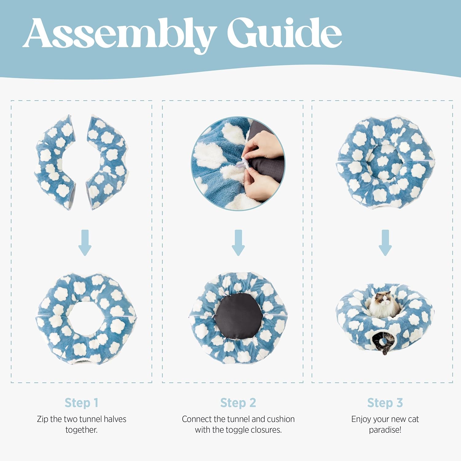 Lesure Cat Tunnel Bed for Indoor Cats - Cute Cat Donut Tunnel Toys with Washable Circle Cushion, Round Pet Peekaboo Cave Toy for Kitten/Puppy/Rabbit, Standard Ice Blue
