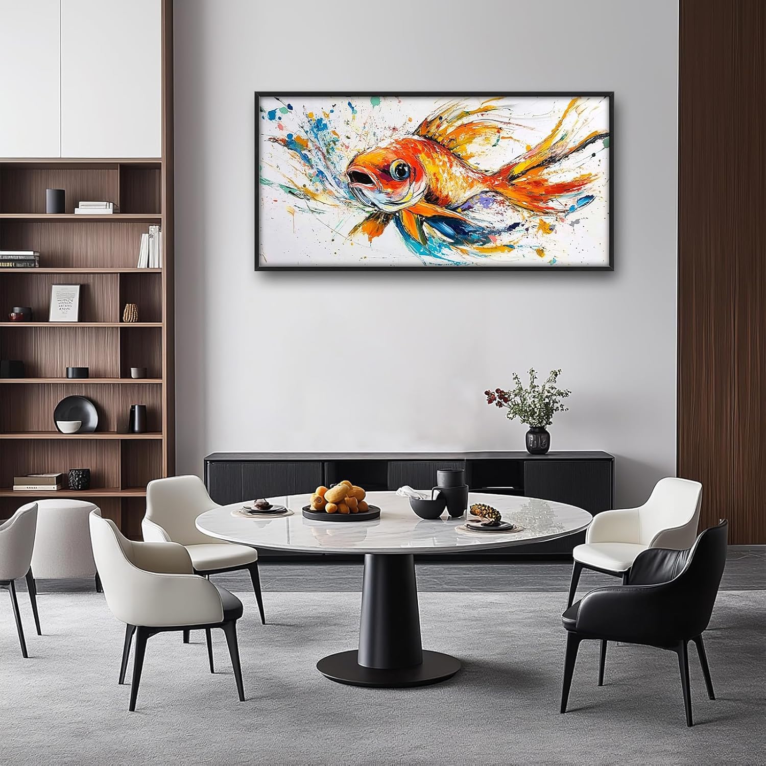 Framed Large Fish Wall Art for Living Room, Oversized Graffiti Goldfish Wall Decor Watercolor Fishing Canvas Painting Modern Artwork Home Decoration for Living Room Bedroom Office 60"x30"