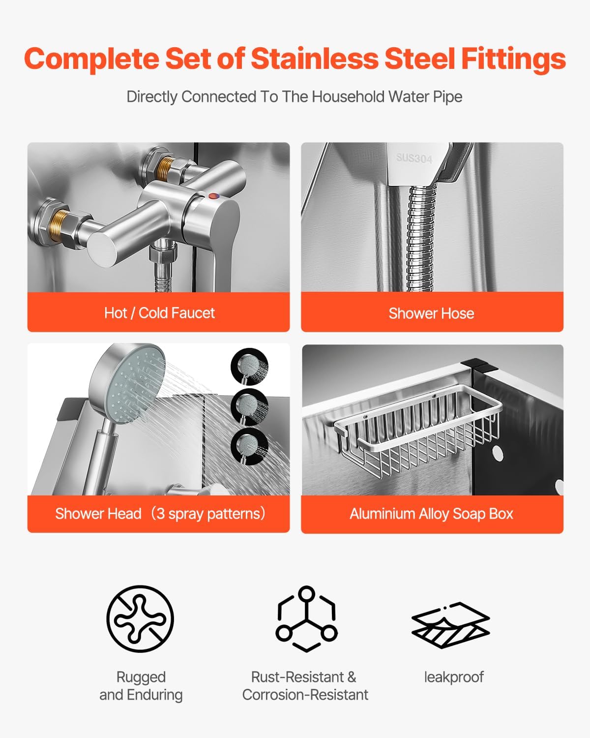 - Integrated Design: The rounded seamless welding provides better sealing and makes cleaning more convenient. The dog grooming tub is featuring hot and cold faucets, a dual-control showerhead, and a soap holder, this design simplifies and streamlines the bathing process. The PE water filter board provides a non-slip draining surface, and the included duckbill buckle stops pets from accidentally triggering the door during bath time, keeping them securely inside