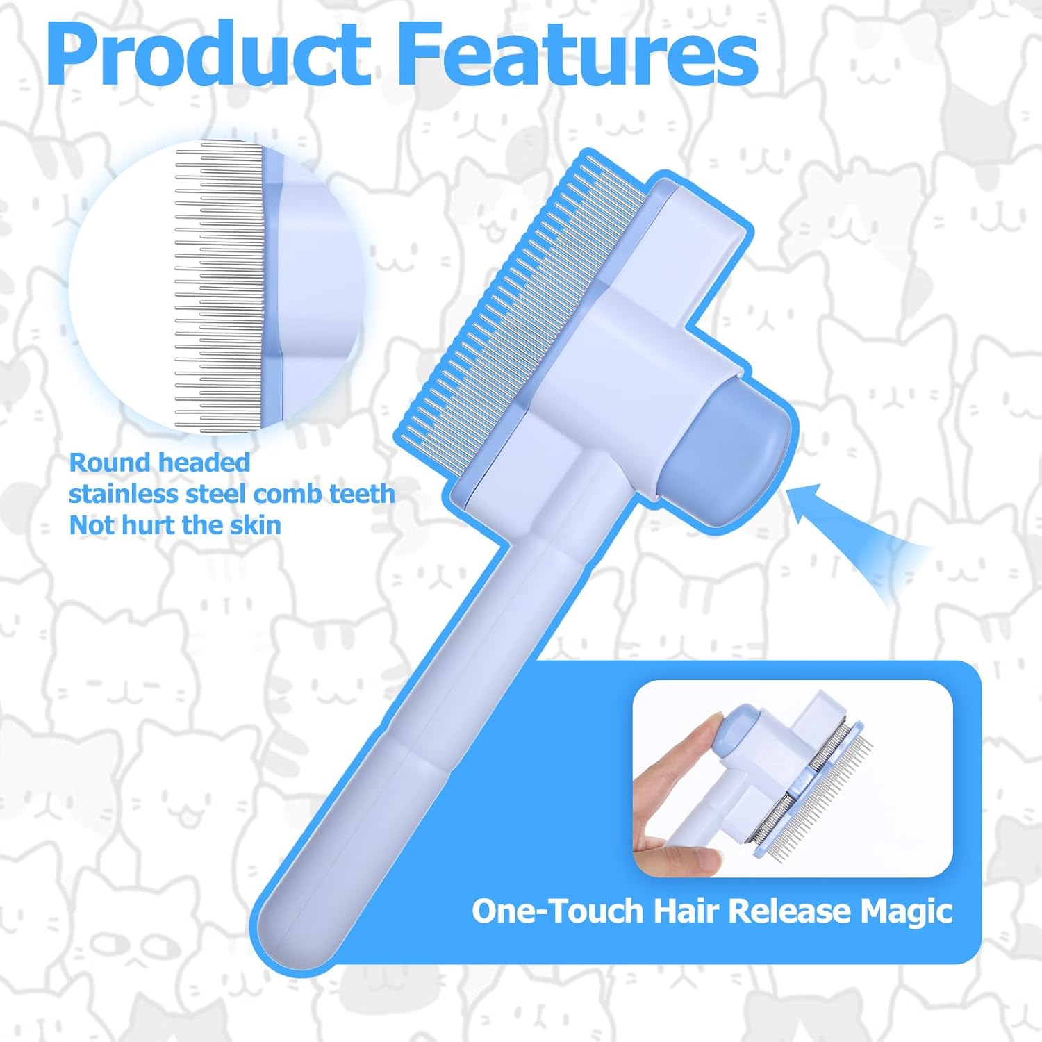 - 【Pet Hair Removal Made Easy】This innovative pet hair removal tool features long and short stainless steel teeth, making it an ideal dematting comb for cats. It effortlessly captures and lifts away unwanted hair, reducing shedding and promoting a healthier coat.