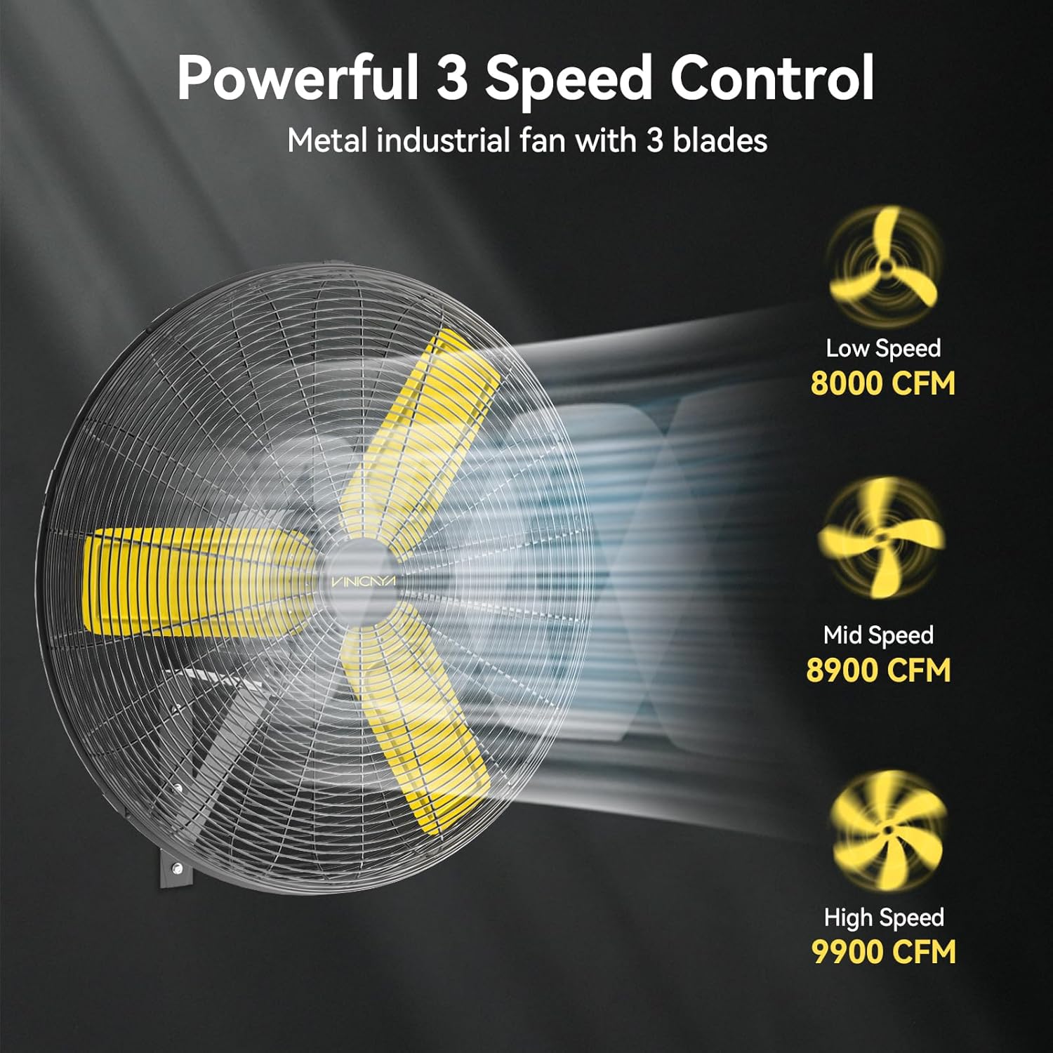 - Powerful Air Movement: VINICAYA industrial wall fan equipped with a powerful motor and large blades to deliver strong, wide-reaching airflow to quickly cool and ventilate large spaces, making it ideal for industrial and commercial use